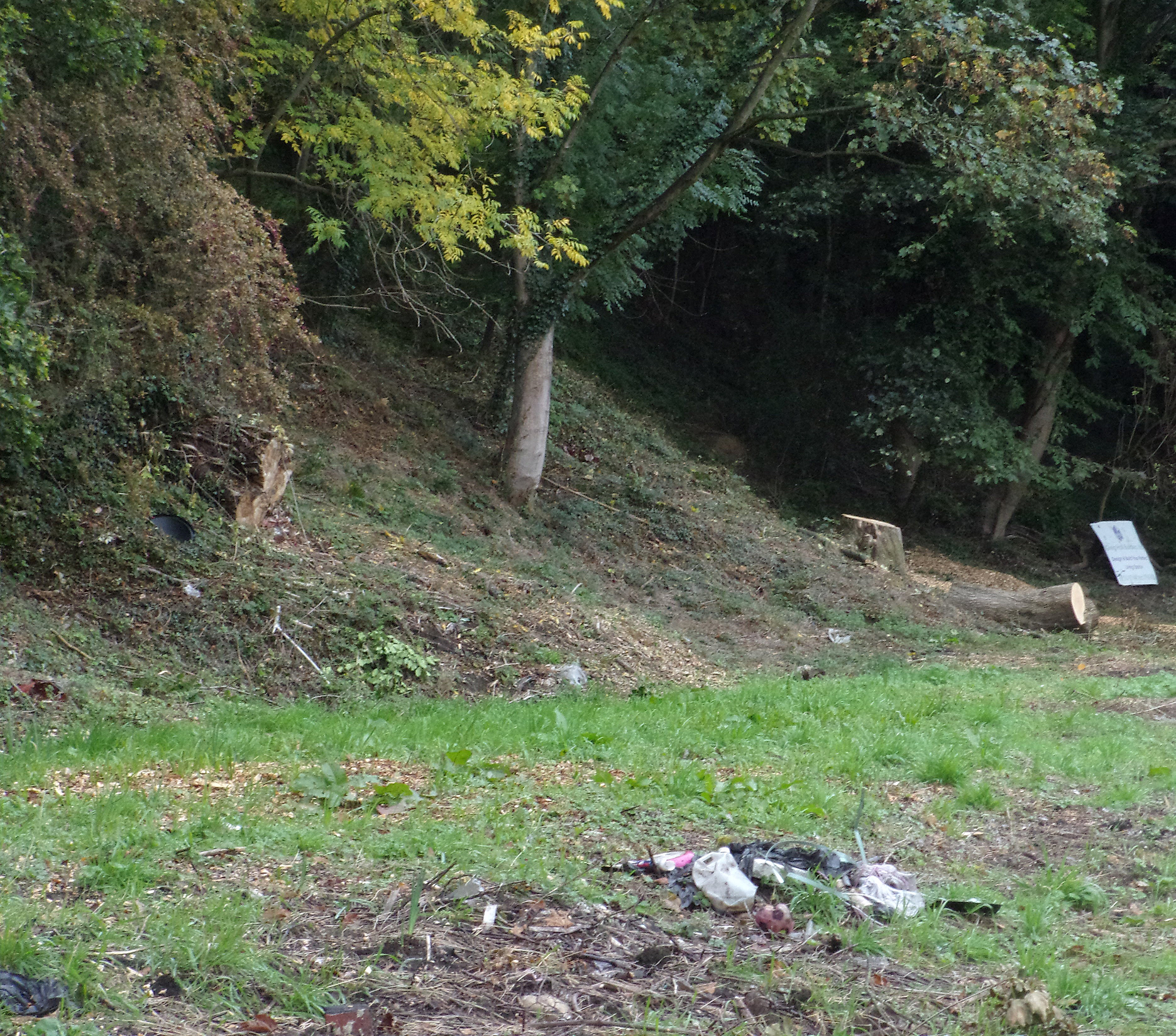 I counted at least 50 rings on the cut trunk of that tree. Ash dieback in an older tree doesn’t necessarily mean the end. The landowner doesn’t care about tree welfare, he is simply continuing his work of clearing as much of the land as he can, so he can cram as manu houses as possible on there.