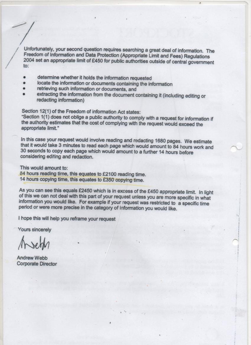 On 23 September 2009 Stockport Council declined to investigate concerns over a sharp rise in the cost of a proposed local school project — and subsequently imposed a ban on further questions about the issue, a ban that remains in force more than seventeen years later.