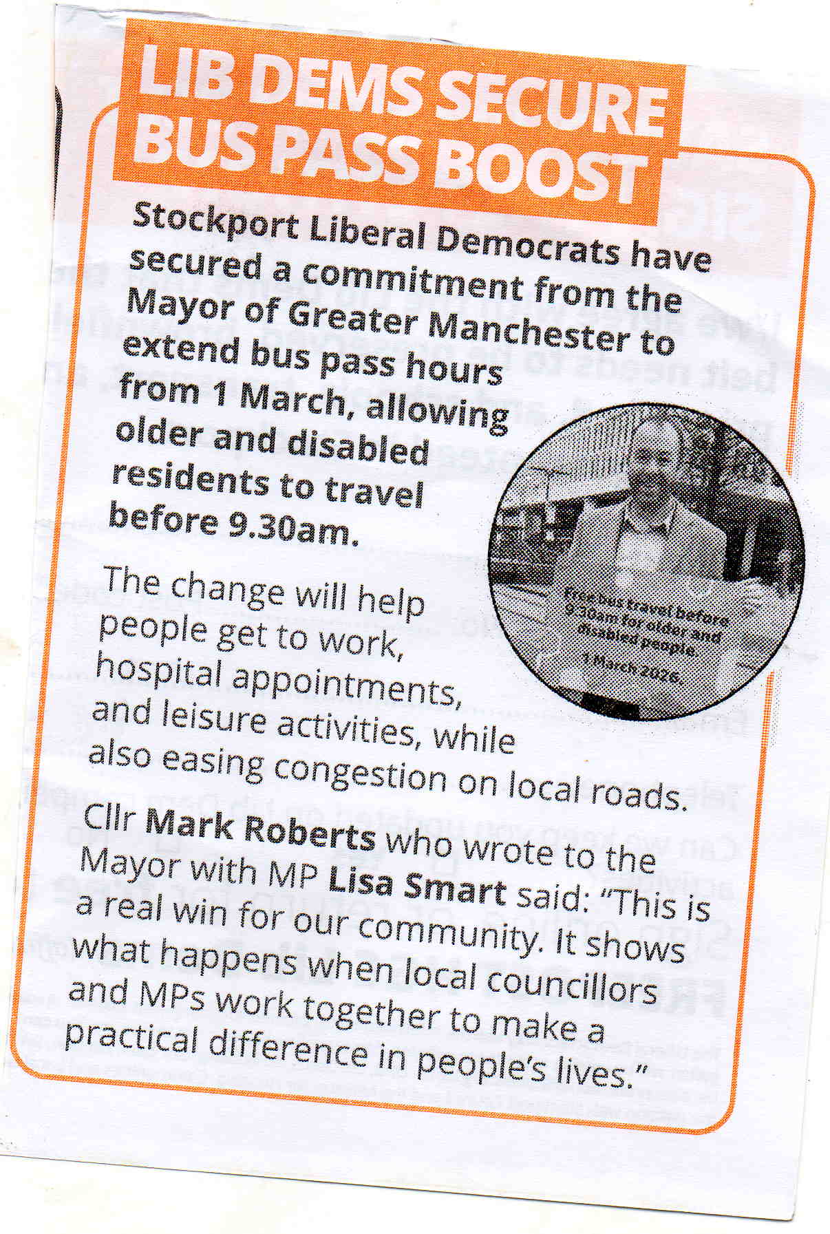 - While Liberal Democrats and their campaigners helped build pressure and political support, the formal commitment and policy change was delivered by the Mayor and Greater Manchester Combined Authority through local transport planning and budget decisions.